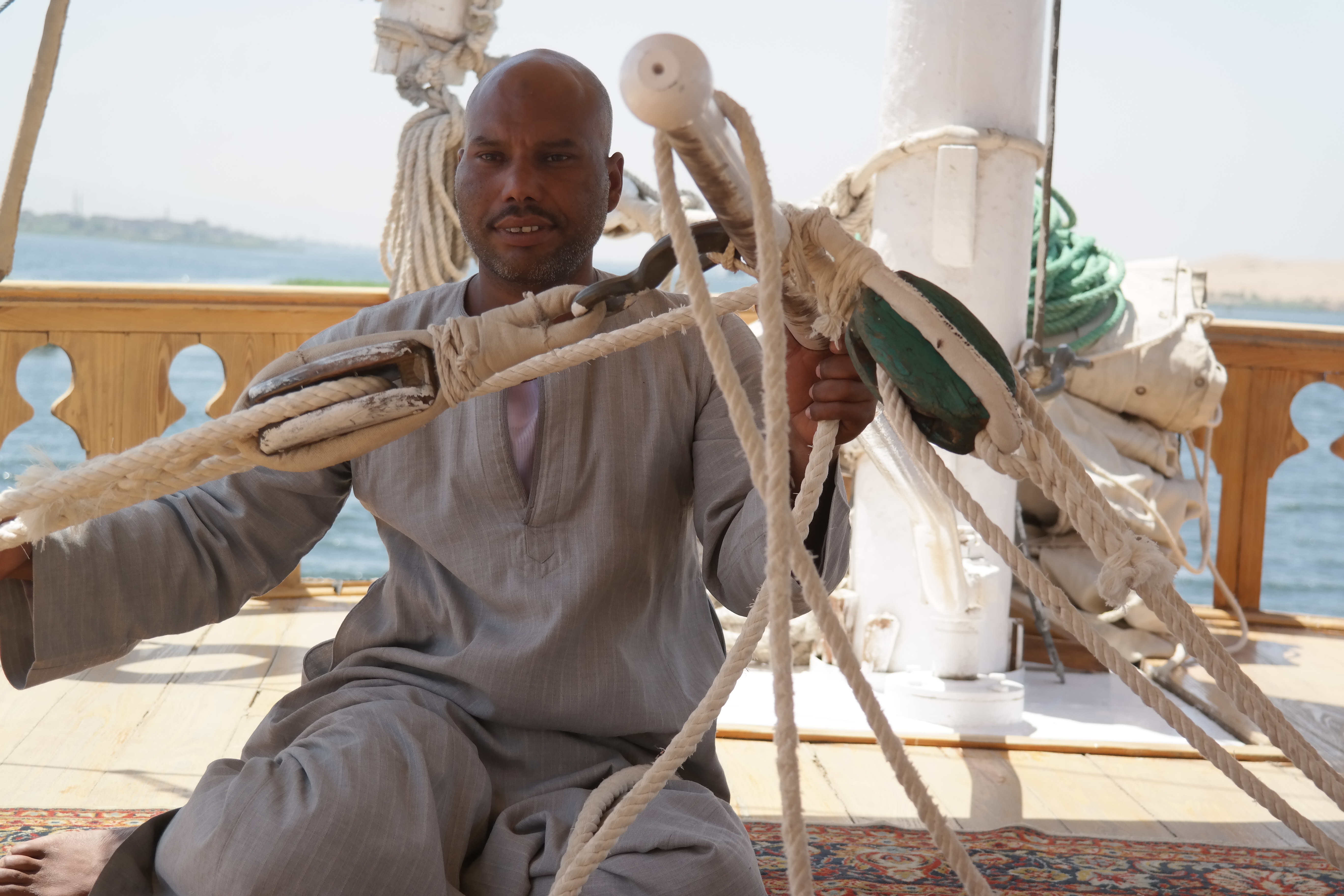 Nu op de boot is het heerlijk ,even weg van de vieze gerommel van het land.Overal zie je zwaluwen en witte nijlvogels vliegen .Je hoort moskeeƫn en ezels smeken.Je ziet kinderen spelen aan de rand van het water.En de omzoming van de Nijl is groen en vruchtbaar.